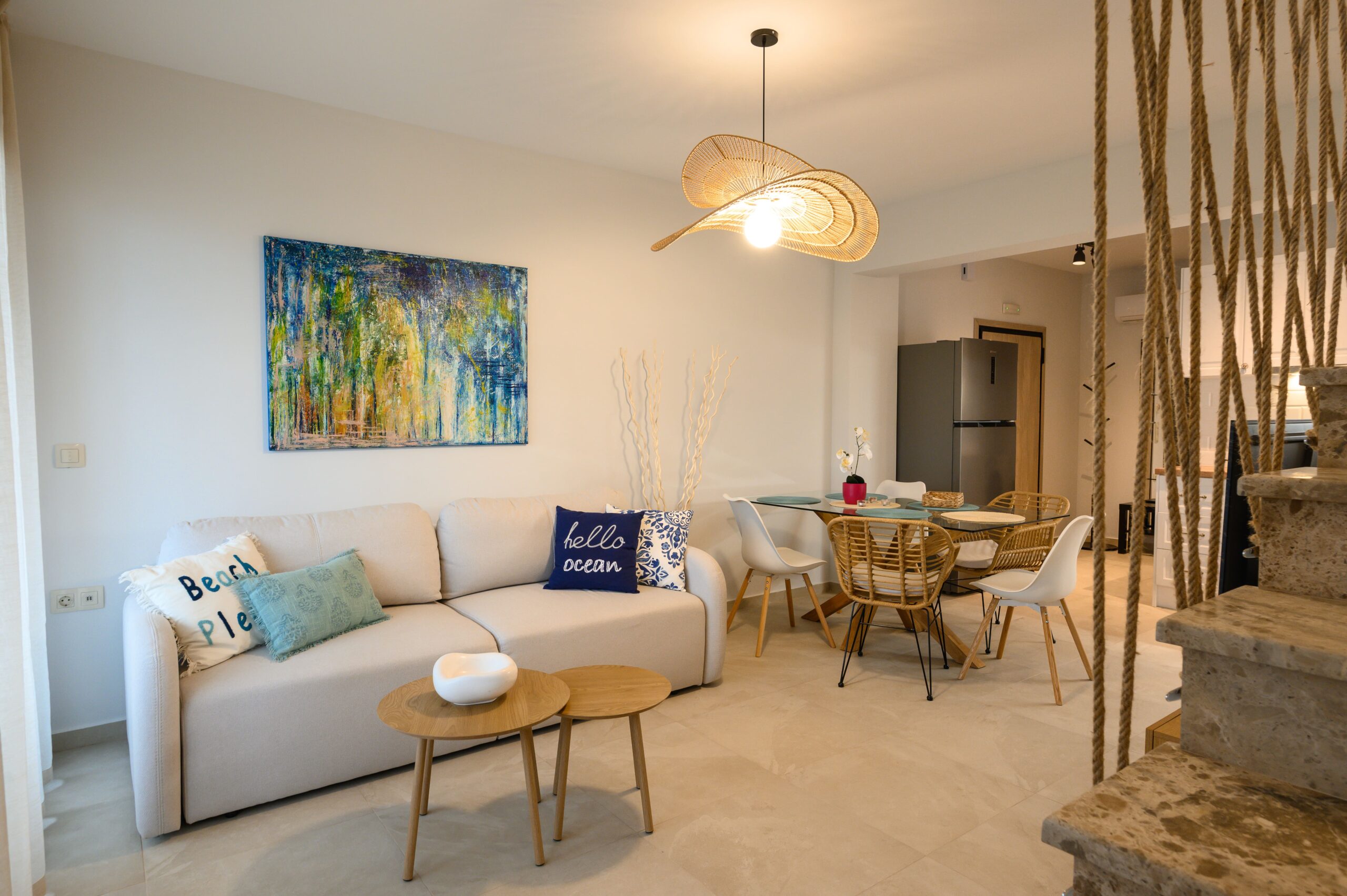 Aydınlık, ferah ve ruh dolu bu maisonette, detaylı tasarımı huzurlu bir sadelikle harmanlamaktadır. İki özel yatak odası, kraliçe yatağa dönüştürülebilen zarif ve rahat bir kanepe, iki güzel banyo ve tam donanımlı bir mutfağa sahip olan bu daire, konfor, gün ışığı ve kolay şıklık arayan aileler ve arkadaşlar için idealdir. Büyük pencerelerden süzülen yumuşak doğal ışık ve özel geniş balkonuyla bu alan sizi gün doğumu kahvaltılarından altın saat akşam yemeklerine kadar günün her anında yavaşlamaya ve tadını çıkarmaya davet ediyor.